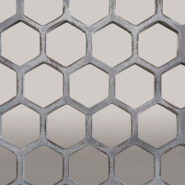 This exotic cabinet belongs in any rustic hallway. Featuring reflective honeycomb mirror accents, all three door panels slide to reveal plenty of shelving space. Painted and finished by hand to show the solid Brazilian pine underneath.