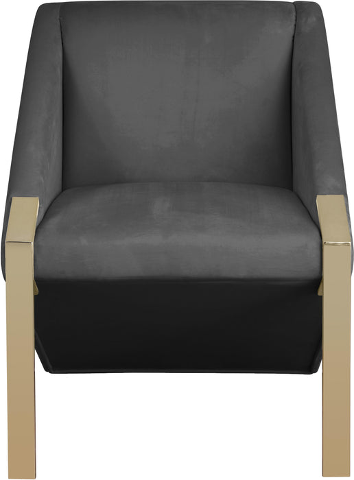 Elegant and eye-catching, the stunning grey velvet Rivet Accent Chair from Meridian Furniture is the perfect addition to any space.