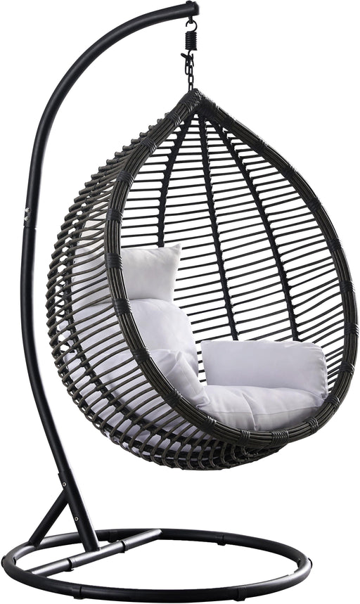 Tarzan Dark Grey Outdoor Patio Swing Chair - Dark Grey Rattan Swing - Matte Black Metal Base - White Resilient Waterproof Fabric - Indoor/Outdo...
