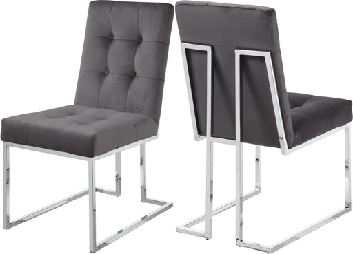 Dine in sophistication and elegance when you're seated in this Alexis grey velvet dining chair. This pretty chair has a modish look that's suitable...