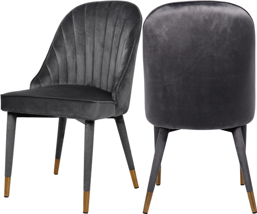 Belle Grey Velvet Dining Chair - Soft Grey Velvet - Curved Channel Tufted Back - Upholstered Leg with Gold Tip - Contemporary Design