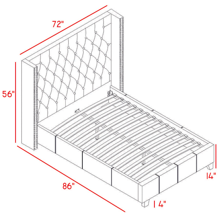 Elegant and eye-catching, the stunning Ashton Bed from Meridian Furniture is the perfect addition to any space. Rich Linen covers the deep tufted design. A beautiful wing bed design is complimented by hand applied chrome nail head details. Strength and beauty is guaranteed with a solid wood frame and legs.