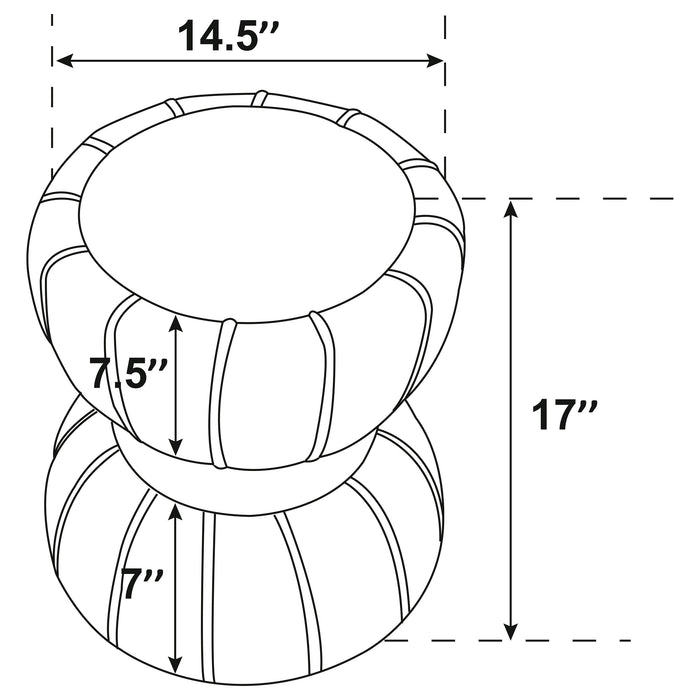 Put finishing touches on a chic decor with a modern glam ottoman. Its hourglass silhouette is playful and elegant, with a wide band highlighting in a bright gold finish. The round ottoman is a compact addition, offering a perfect spot to prop your feet. It easily serves as an extra seat when entertaining, and can even serve a spot to stash a book or your phone. The ottoman features velvety soft upholstery in a chic color, with vertical piping that adds character and dimensionality.