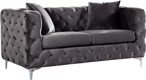 Ravish Grey Velvet Loveseat - Sofa Grey Velvet - Deep Channel Tufting - Complete Sets of Gold & Chrome Legs Included to suit your decor - C...