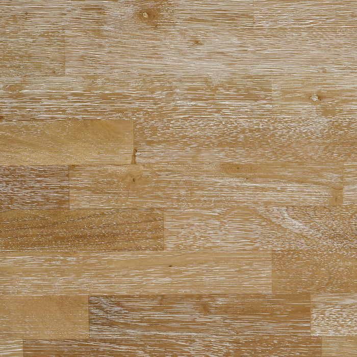 Enjoy delicious dinners and the company of friends and family when gathered at this five-piece cottage dining set. Offering casual charm, the set centers on a two=tone rectangular dining table that comfortably seats six. The tabletop is a warm, natural wood finish that plays well in modern farmhouse and casual contemporary decor, setting a relaxed tone for meals, games, and even homework. The table's base receives a white finish to complement its clean-lined design and gently tapered legs. Four chairs are included with the set, offering a white finish with an open back decorative with an X-cross detail and a foam-padded seat in light gray upholstery that maintains a soothing, neutral color palette.