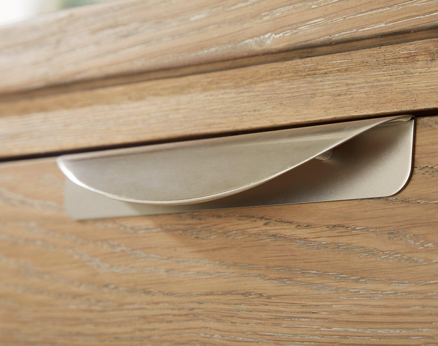 The classic yet contemporary good looks of this occasional table package are hard to deny. Softly shaped posts with a light oak finish and wire-brushed wood grain texture lend an organic appeal to your soothing space. Roomy drawers cater to additional storage needs while keeping clutter at bay.