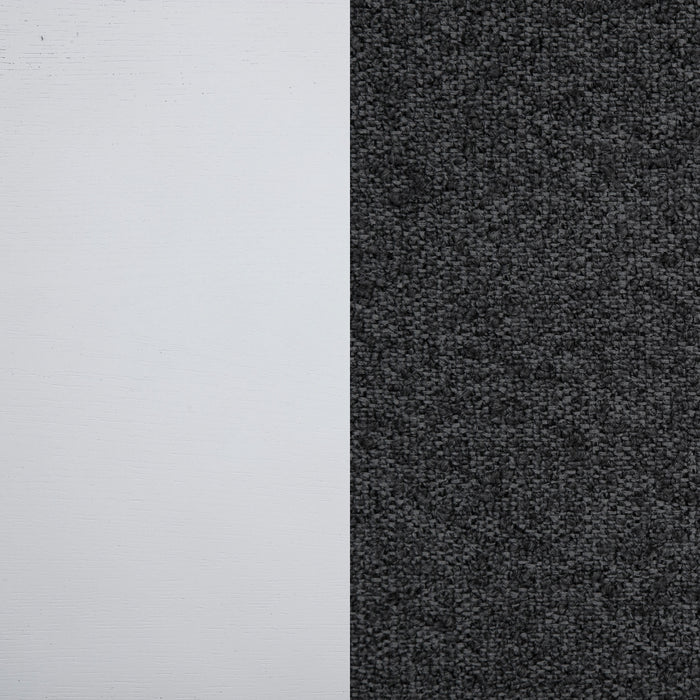 Dimensional gray upholstery creates engaging contrast and depth for this set of two modern dining chairs. Each boasts a tall, refined silhouette that's armless to create a smooth, streamlined silhouette. Cushions are padded with foam and covered in dark gray upholstery. A pearl white finish adds crisp, clean character, delivering a look that works beautifully in a variety of spaces and decor styles. Chairs are complete with flared front legs and squared edges that encourage a clean, precise look.