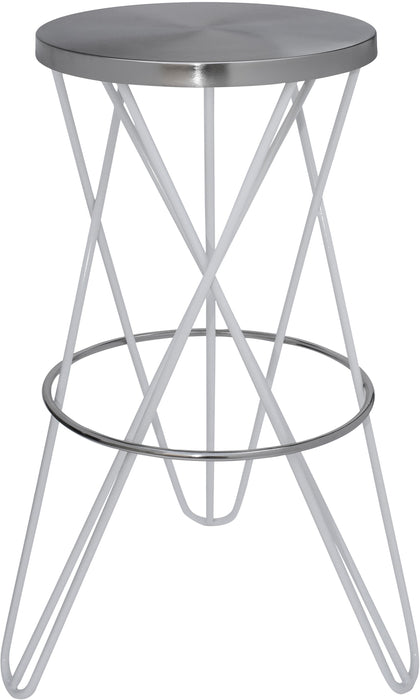 - Brushed Silver Iron / White Powder Coated Bar Height Stool