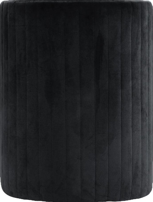 Create a chic atmosphere with this Selena Black Velvet Accent Chair. This handsome chair has a fun barrel design that lends contemporary charm to a bedroom, living room or sitting room. The chair and matching included ottoman are covered top to bottom in plush velvet for a sumptuous look. Channel tufting adds a visually exciting finish to this elegant pair.