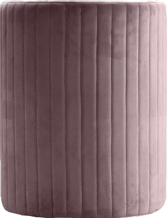 Create a chic atmosphere with this Selena Pink Velvet Accent Chair. This handsome chair has a fun barrel design that lends contemporary charm to a bedroom, living room or sitting room. The chair and matching included ottoman are covered top to bottom in plush velvet for a sumptuous look. Channel tufting adds a visually exciting finish to this elegant pair.