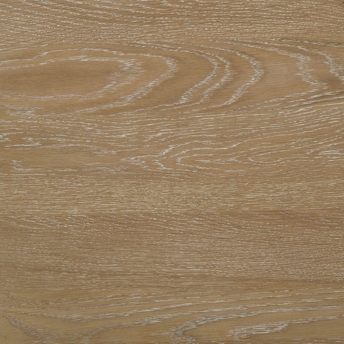 This elegant dining set seamlessly blends modern refinement with timeless craftsmanship. Featuring a dining table in a pearly almond finish, the set boasts a sturdy oak veneer, Asian hardwood, and engineered wood construction. The table includes a striking base with vertical reeding and an extension leaf for versatile seating options. Complementing the table are dining chairs upholstered in warm wheat fabric with ergonomic backrests. The chairs' matching wood finish and sturdy construction ensure durability and a cohesive, sophisticated aesthetic.
