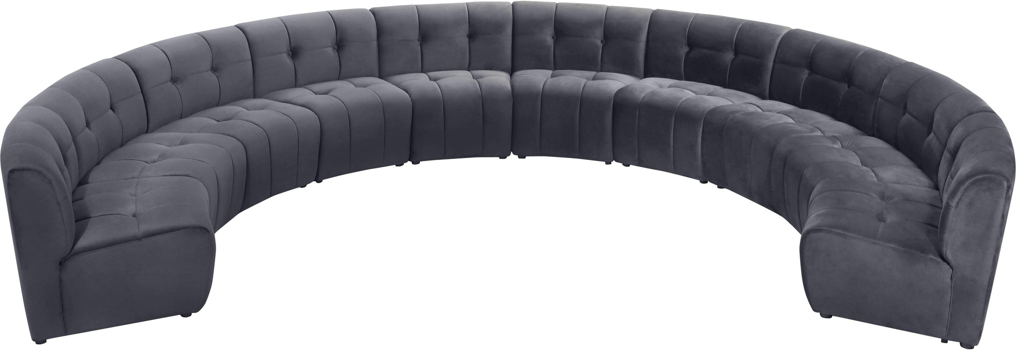 Invest in your home's comfort with this Limitless 10 Piece Sectional. This modular unit offers tons of flexibility in the number of ways that you can put each piece in the Limitless collection together to get the ideal customized look. Upholstered in grey velvet, this beautiful piece is soft and cool to the touch, so you can feel comfortable from every angle. Button and channel tufting add to this unit���s upscale look and contemporary charm.