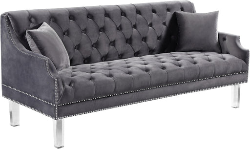 Upholstered in soft grey velvet, this Michelle sofa is sumptuously glamorous. Designed for upscale living, this chair features rich gold nail head ...