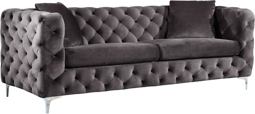 Melody Grey Velvet Sofa - Soft Grey Velvet - Deep Channel Tufting - Contemporary Design -