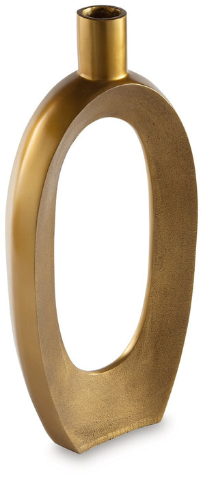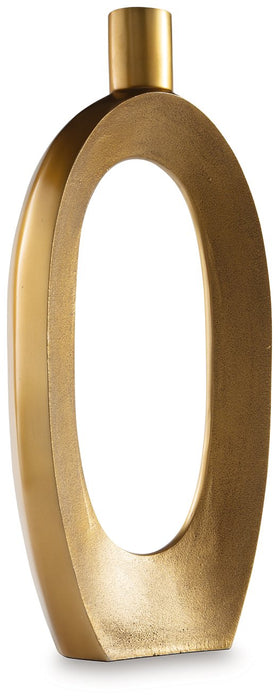 Geometric forms get a glam upgrade in this vase. Decidedly contemporary with its sculptural silhouette, it ushers a confidently curated vibe into your space. The goldtone finish brings an eye-catching metallic flair to your mantel, bookshelf or centerpiece arrangement.