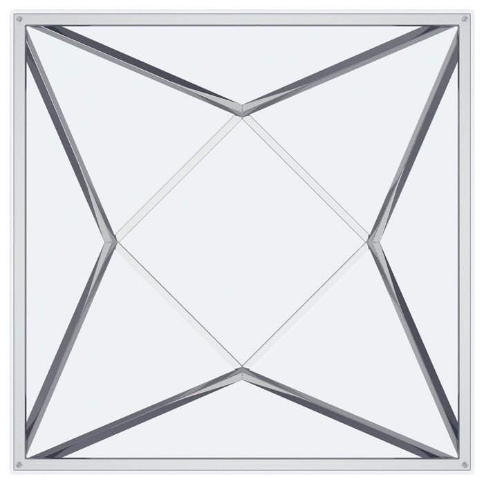 This modern coffee table set features a bold geometric design, combining polished nickel-finished steel bases with clear tempered glass tops. The tempered glass surfaces are scratch-resistant and easy to maintain, making them ideal for everyday use. The open-frame design enhances the airy, contemporary aesthetic, perfect for minimalist or industrial-inspired interiors. Crafted with durable materials and an elegant design, this set brings style and functionality to any modern living space.
